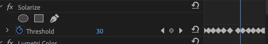 Then I dragged the Solarizes effect onto the video which i found in the effect bar. With this effect I randomly choose levels like 30 and made a keyframe then increased or decreased the levels throughout the clip. When doing that I made a keyframe for each one. The effect is this trippy style that changes the contrast making the colours brighter. Overall this is a unique technical effect.